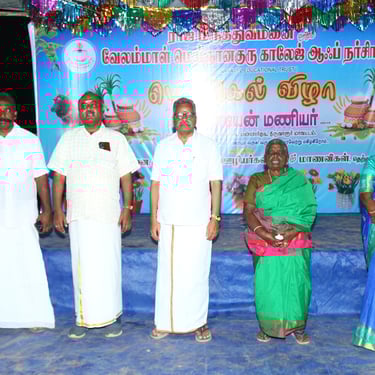 Pongal is a significant festival celebrated in Tamil Nadu, and its celebration in educational institutions like VELAMMAL MEIGNANAGURU COLLEGE OF NURSING would likely involve various traditional rituals and cultural activities. Here's a hypothetical glimpse of how the Pongal celebration might unfold at the college: